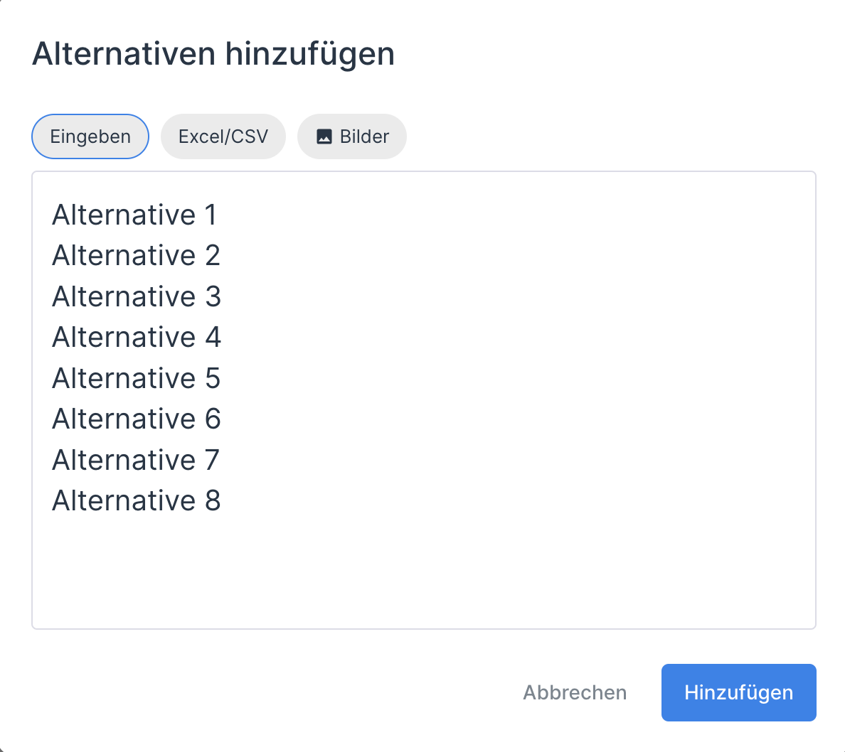 Mit Prioneer musst du keine Tabellen oder Formeln anpassen, um mehr Optionen zu vergleichen. Füge einfach deine Optionen hinzu.