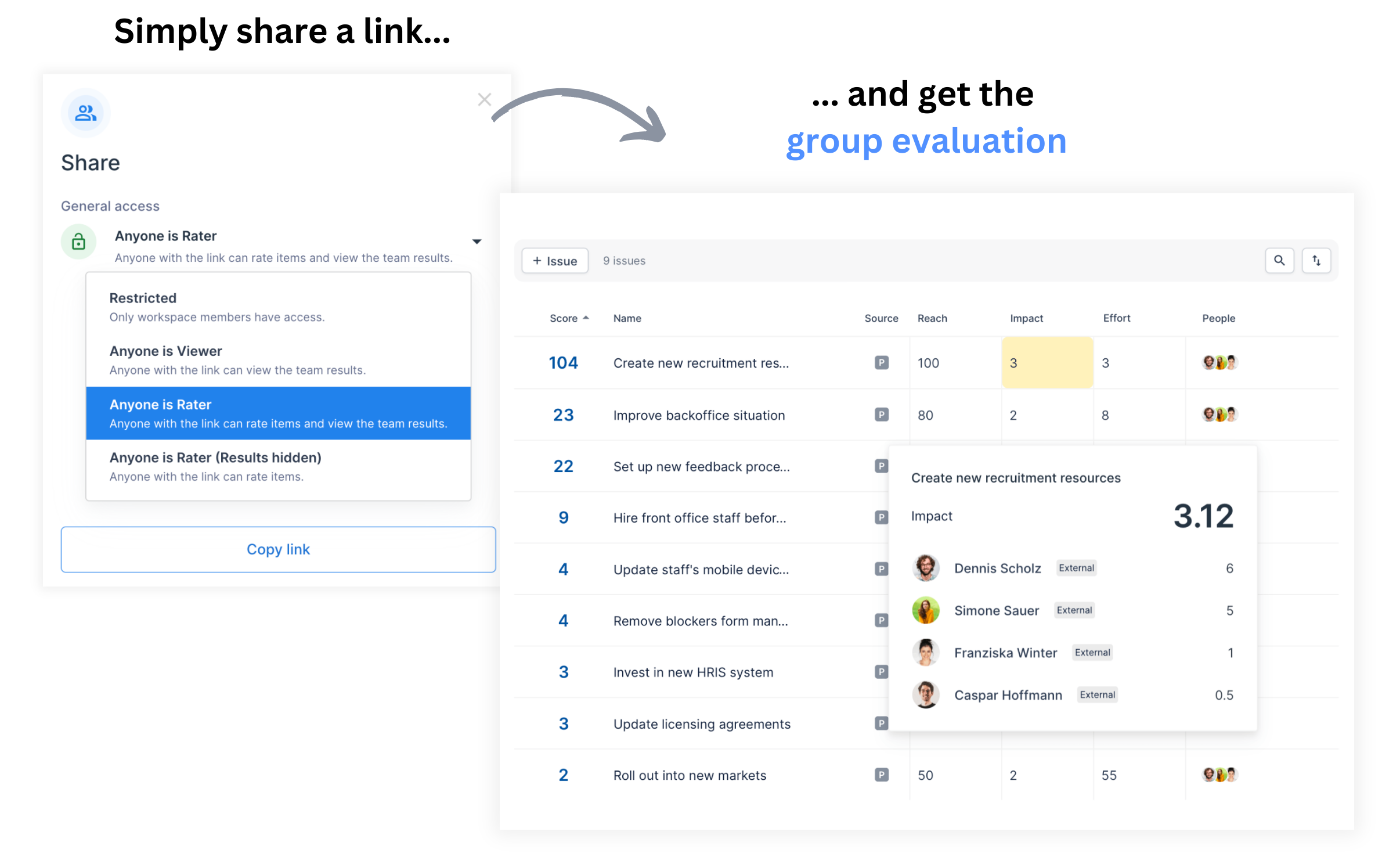 “The team rating allows us to quickly prioritize as a team, without having to discuss each project one by one. We save a lot of time, and the entire team has clarity regarding which of the new projects we expect to have the greatest impact.”